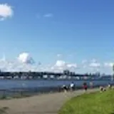 Waterfront path right outside the terminal — stretch your legs with river views